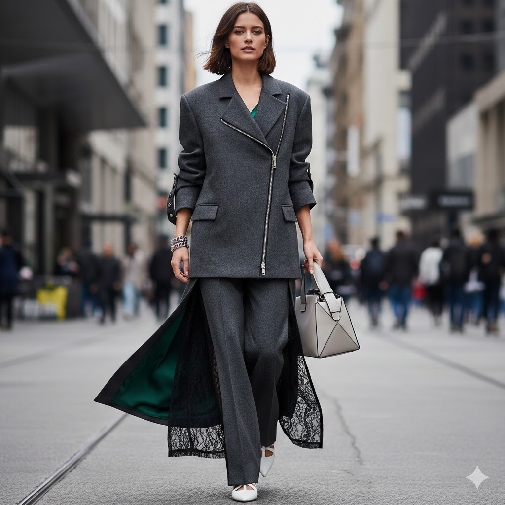 Q2. 사무실에서 입기에 너무 파격적이지 않을까요? A2. 정도의 문제입니다. 소매 안쪽에 숨겨진 지퍼나, 팬츠 밑단의 작은 슬릿 정도는 오피스룩에 활력을 불어넣는 훌륭한 포인트가 됩니다. 업무 중에는 닫고, 퇴근 후에는 열어보세요.